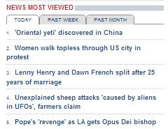 Yes, the proof is in todays “Most Viewed” widget of the Daily Telegraph website. The day that Gordoom called a General Election after 13 years of flushing the country down the toilet – bringing the country to its knees and daring with a gall beyond satire to use the theme ‘don’t let the Tories mess it up’.