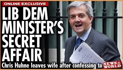 The breaking story currently buzzing on the newswire is that Chris Huhne has been exposed as being a straight LibDem. Colleagues are reacting with shock. Mark Oaten has probably put down his rent boys for half an hour to digest his disgust at this quite unforeseen development.
