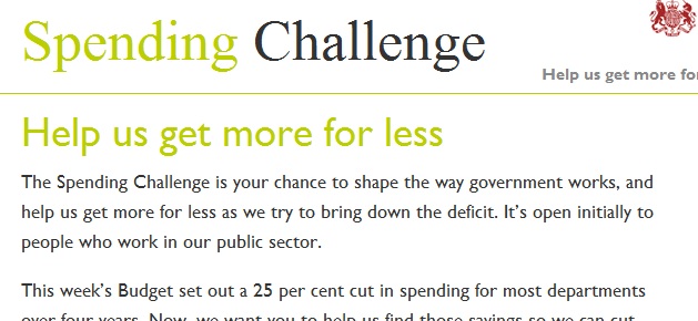 The Spending Challenge is your chance to shape the way government works, and help us get more for less as we try to bring down the deficit. It’s open initially to people who work in our public sector.